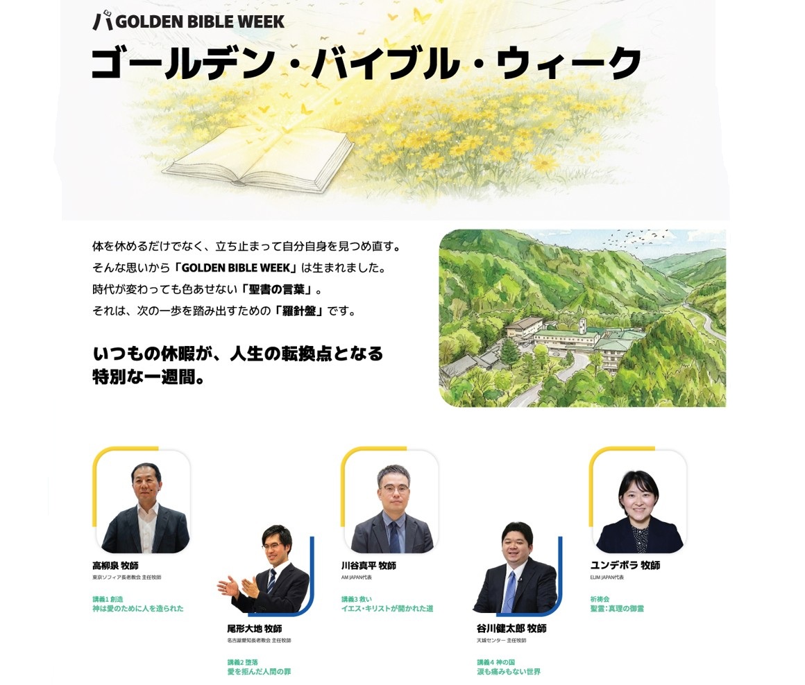 いつもの休暇が、人生の転換点となる特別な一週間。 今年のゴールデンウィーク、皆様はどのようにお過ごしになりますか。 日本中が休息に包まれるこの季節、私たちは「Golden Bible Week(ゴールデン・バイブル・ウィーク)」を開催いたします。 単に体を休めるだけでなく、少し立ち止まって「自分自身の心」と深...